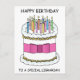 A cute cartoon birthday cake, decorated and covered in lit candles. The words 'Happy Birthday to a special Librarian' accompany the image.