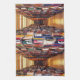 This kitchen towel will take you on a walk down long aisles of books in the stacks of a huge library. The bright lighting reveals book spines in a kaleidoscope of colours: red, green, blue, black, white, gold, brown, purple. The symmetrical angle creates a geometric abstract pattern that seems to lead to infinity.