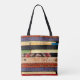This tote bag features a stack of library books. They form an interesting abstract geometrical pattern in colours of green, yellow, red, blue, black and pink.