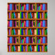 The bright bookshelf background pattern on this beautiful wall poster is perfect for bibliophiles / proud bookworms. The graphic pattern repeats, with about 25 books total. Some lean, some stand up straight, and they're all brightly coloured and sitting on a shelf frame with a wood grain look. It's the perfect way to display your love for reading and libraries. It makes a great gift for an avid reader, book collector, English teacher, writer or librarian. "Customize It" to resize this infinitely repeating pattern if you want more or fewer bookshelves on your poster. See matching items in our store!