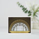 A reproduction of a Print shows the Main Reading Room. Semi-circular stained glass window in alcove with statues of History and Commerce on either side.