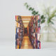 This 2013 calendar postcard takes you on a walk down a long aisle of books in the stacks of a huge library. The bright lighting reveals book spines in a kaleidoscope of colours: red, green, blue, black, white, gold, brown, purple. The symmetrical angle creates a geometric design that seems to lead to infinity. The reflections on the freshly waxed floor contribute to the overall pattern. The reverse has a complete 2013 calendar on one convenient page.