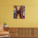 This poster takes you on a walk down a long aisle of books in the stacks of a huge library. The bright lighting reveals book spines in a kaleidoscope of colors: red, green, blue, black, white, gold, brown, purple. The symmetrical angle creates a geometric abstract design that seems to lead to infinity. The reflections on the freshly waxed floor contribute to the overall pattern.