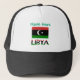 Personalized trucker hat shows the black, red, green and white Libyan flag with the word LIBYA below. Above is a place for a name, your name, to add a personalized look or, someone else's name for a special gift. Wear to your family reunion, if you wish.