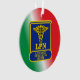 This custom Christmas ornament is decorated on one side with the Licensed Practical Nurse Shield. The reverse side is decorated with an image of Santa Claus carrying his bag of goodies, and can be customized with names, dates, etc.