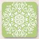 This white mandala sits on a bright, yellowish green background. The colour is natural and optimistic. Part of the Pras Mandala Collection.
