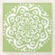 This white mandala sits on a bright, yellowish green background. The colour is natural and optimistic. Part of the Kylgh Mandala Collection.