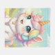 Le Décor : La licorne est installée dans une prairie verdoyante parsemée de petites fleurs jaunes et blanches. Le ciel en arrière-plan est d'un bleu clair avec quelques nuages cotonneux et des étoiles qui scintillent même en plein jour.