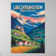 Liechtenstein retro vector travel design. With highlights like Vaduz Castle and sweeping views of the Rhine Valley, it’s a picturesque destination nestled between Switzerland and Austria.