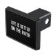 We have put a trailer hitch on our SUV and wanted to have an attractive way to cover it when not pulling the trailer. This is exactly what we wanted! The colours and design are great. It’s new so we don’t know how it will last with exposure to the elements. It looks great now.