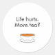 Life hurts. More tea? funny inspiration tea slogan Classic Round Sticker