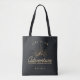Personalized shoulder bag with a gold coloured illustration on a black-grey background. Designed with an illustration of a mountain with the suns rays shining outward from behind. Typography says: Life is an Adventure explore dream discover.