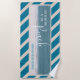 Take this fun beach towel to your beach cottage. It features a beautiful photo of teal blue ocean water and white sand and white handwritten style text on top of the photo reads: Life is better at the Beach. The design is accented with teal and tan diagonal stripes. Personalize this towel with your name.