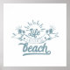 Word art style poster : Life is better at the beach, sun and tropical tree silhouettes with modern font in light blue tint
