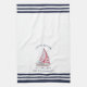 Personalize this nautical design with your family name or other text to create a unique white, navy blue and red kitchen towel with a sailboat illustration and the Life is Better at the Lake saying. It's a unique gift idea for lake house owners for Christmas, a Housewarming party or other occasions.