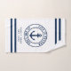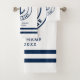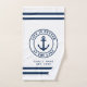 Life is better at the lake navy and white custom Bath Towel Set. Make your own towel set for lake house, sailing, boating, yachting, pontoon, summer, swimming pool, fishing and more. Elegant housewarming present for new home owner, sailor family, skipper, friends, retiree, pensioner, family, retired husband, wife, boss, colleague, boat owner, pontoon owner, traveller, retired co worker, retiring person, boat captain, coach, grandpa, grandma, kids etc. Customizable in different colours. Navy blue and white colour combination with stripes and ship anchor logo. Bold typography template. Includes wash cloth, hand towel and big bathroom towel. Great for vacation home or beach house.