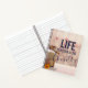 A spiral notebook with a rustic country design. A trendy old rusting milk can. Wheat and faded red poppies in the background set against a faint wood panel. Wood is just an image, not real. Text says Life is better in the country.