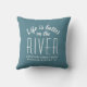Life is Better on River Quote Teal White Custom Throw Pillow