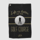 Life is Better Quote Golfer Monogram Black Gold Golf Towel