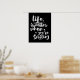 Inspirational poster displaying the phrase "Life is better when you're Smiling" in white brush script with an organic ink texture to achieve an authentic, hand lettered look. Designed to look great on all portrait oriented poster sizes. Please do check if the image needs to be repositioned or resized after changing the poster size.
