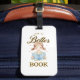 This tag is adorned with the playful phrase "Life is Better with a Book". Between the text, there's a charming illustration of a girl happily immersed in a book. Her hair is loosely styled, and she's smiling contentedly, with a serene expression on her face. She’s surrounded by subtle hearts, adding a sense of joy and tranquillity to the scene.