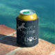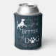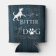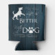 Keep your can beverages cool with a Life is better with a Dog Cooler. Cooler design features text that says "Life is better with a Dog." with a paw print and dog silhouette embellishment against a deep blue rustic wooden background. Additional gift items available with this design as well.