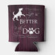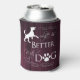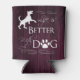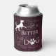 Keep your can beverages cool with a Life is better with a Dog Cooler. Cooler design features text that says "Life is better with a Dog." with a paw print and dog silhouette embellishment against a deep magenta rustic wooden background. Additional gift items available with this design as well.