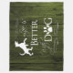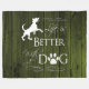 Stay cozy on chilly fall evenings with a Life is better with a Dog Fleece Blanket. Blanket design features text that says "Life is better with a Dog." with a paw print and dog silhouette embellishment against a deep green rustic wooden background. Additional gift items available with this design as well.