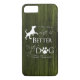 Protect your iPhone with a Life is better with a Dog iPhone case. Case design features a deep green rustic wooden background with the saying "Life is better with a Dog" with a paw print and canine silhouette embellishments. Additional gift items available with this design as well.