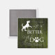 Add an amusing touch to your kitchen with a Life is better with a Dog Magnet. Magnet design features text that says "Life is better with a Dog." with a paw print and dog silhouette embellishment against a deep green rustic wooden background. Additional gift items available with this design as well.