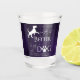 Create a unique shot glass with a Life is better with a Dog Shot Glass. Shot Glass design features text that says "Life is better with a Dog." with a paw print and dog silhouette embellishment against a deep purple rustic wooden background. Additional gift items available with this design as well.