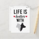 Life is better with cat and dog, text design postcard