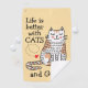 Cute funny doodle of a cat sitting up with her eyes closed, pink cheeks and tan patches. To her left are the words life is better with cats and golf in a fun black font. A small red love heart is buzzing its way down from the the letter C and the background is a beige colour.