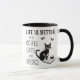 This "Life is better with coffee cats and books" mug features a cute cat with a quote.