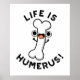 Life Is Humerus Funny Bone Pun features a cute humerus bone happy because life is humorous. Perfect pun gift for family and friends who love cute bone puns.