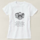 A black and white T-shirt with a picture of a camera with an enlightening and motivating quote about life and how we should tune our perspective. "Life is like a camera. Focus on what’s important, capture the good times, develop from the negatives, and if things don’t turn out – take another shot." Author of quote is unknown. Design and quote is great for photographers or anyone who needs a pick me up in life.