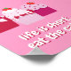 NewParkLane - Humorous Kitchen Poster, featuring three cute pink and red strawberry shortcakes, and funny quote 'Life is short, eat the cake!! in fun typography.