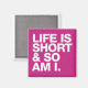 Funny quote magnet for people who are vertically challenged and short. Life is short and so am I. Copyright © Lisa Marie Robinson All rights reserved. It is illegal to use or duplicate this, or any of our images, without written permission.