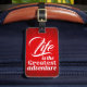 A positive calligraphy quote set against a red radial gradient background. Life is the greatest adventure is an excellent gift idea for anyone with an upbeat attitude.