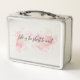 This is a standard metal lunchbox that appears to work just fine. We designed this box ourselves with an uploaded photo and custom text on the front and back. It looks absolutely beautiful except the front of the lunchbox is not centered like it shows in the photo. The print borders don't align with the inset flat part of the box where the preview photo online showed it perfectly centered in there. The back looks nice and centered though.