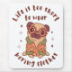 Cute design that shows a lovely fashion-conscious pug dog with the funny quote " Life is too short to wear boring clothes". Good for the young and the old, adults and kids.