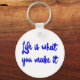 Life is what you make it. A thought about life. Blue cursive text with distressed effect.