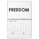 this calendar contains- words like: LIFE, HOPE, PEACE, FREEDOM, and pictures of peace signs and signals.
