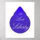 The abstract blue shape including the 5 circles in different shapes and sizes with the slogan of "Life, Love, Liberty" on them represents life is valuable when it is full of love and liberty.