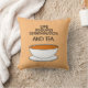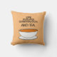 Tea quote (slogan and design © Mira) inspired by the second instalment (“Life requires determination. More tea?”) in a “More tea?” series (© Mira). An inspirational and motivational quote for all you tea lovers and would-be aficionados of these beverages out there. An elegant, chic and contemporary design with a Japanese-style tea cup, on a light orange background. Note that the design on the pillow is all an image, which you can replace with one image (photo or illustration, etc.) of your own, or delete.