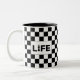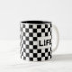 Life Text on Black & White Chess Two-Tone Coffee Mug