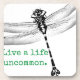 Laissez-vous inspirer de vivre votre meilleure vie ! Graphique en libellule noir et blanc avec le texte "Vis une vie rare"