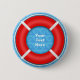 Red life preserver design on blue curley wave background to personalize for fun custom nautical themed party products.