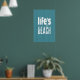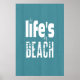 Life's A Beach Bold Typography Quote Poster. White lettering on dark teal blue background and small starfish. Perfect for the beach or lake home, cottage or cabin, or vacation rental property. Design by Jenn's Emporium,