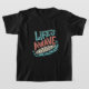 Cool summer themed lettering design featuring Life's Awave and Let's Catch it caption on a surf board caption on top of waves illustration.